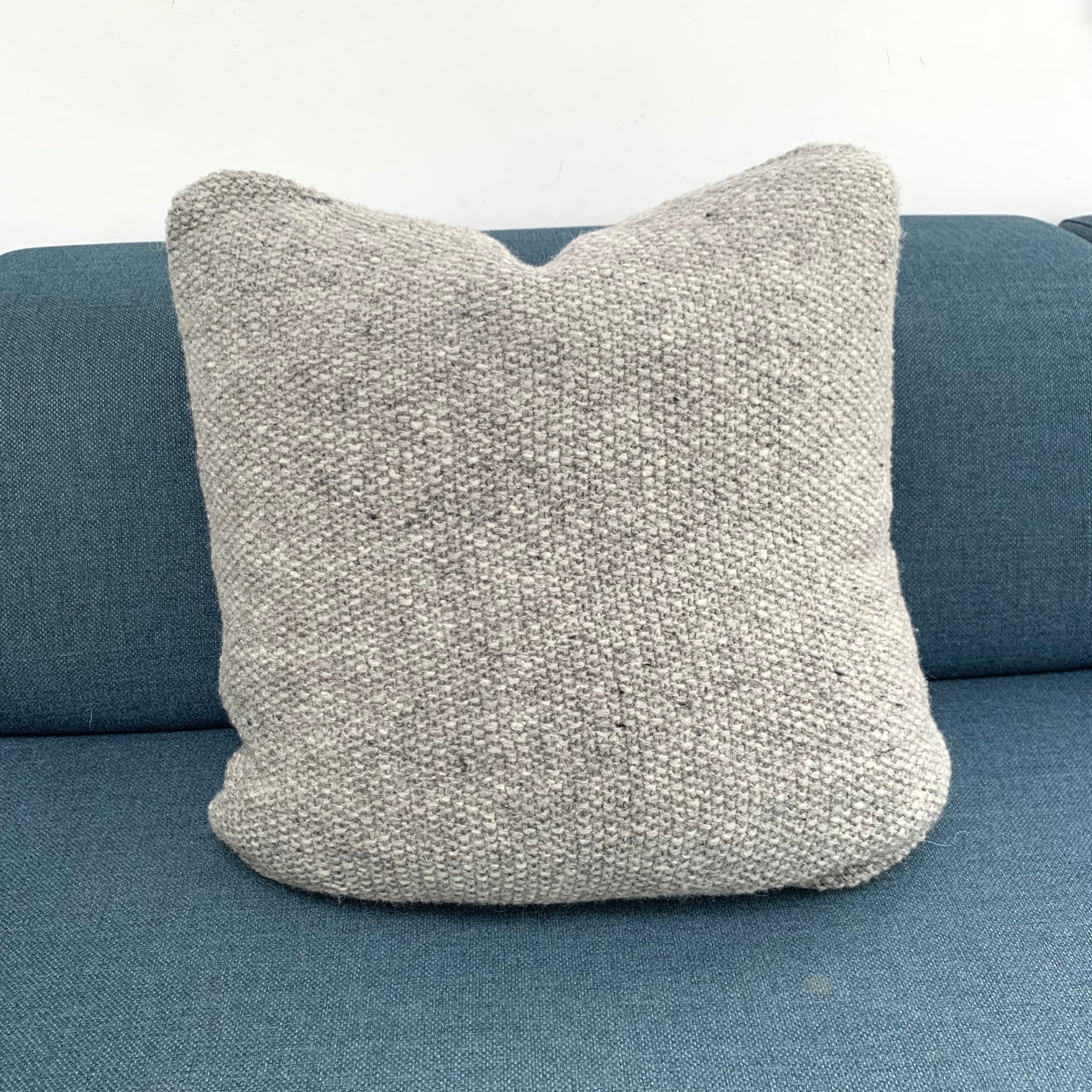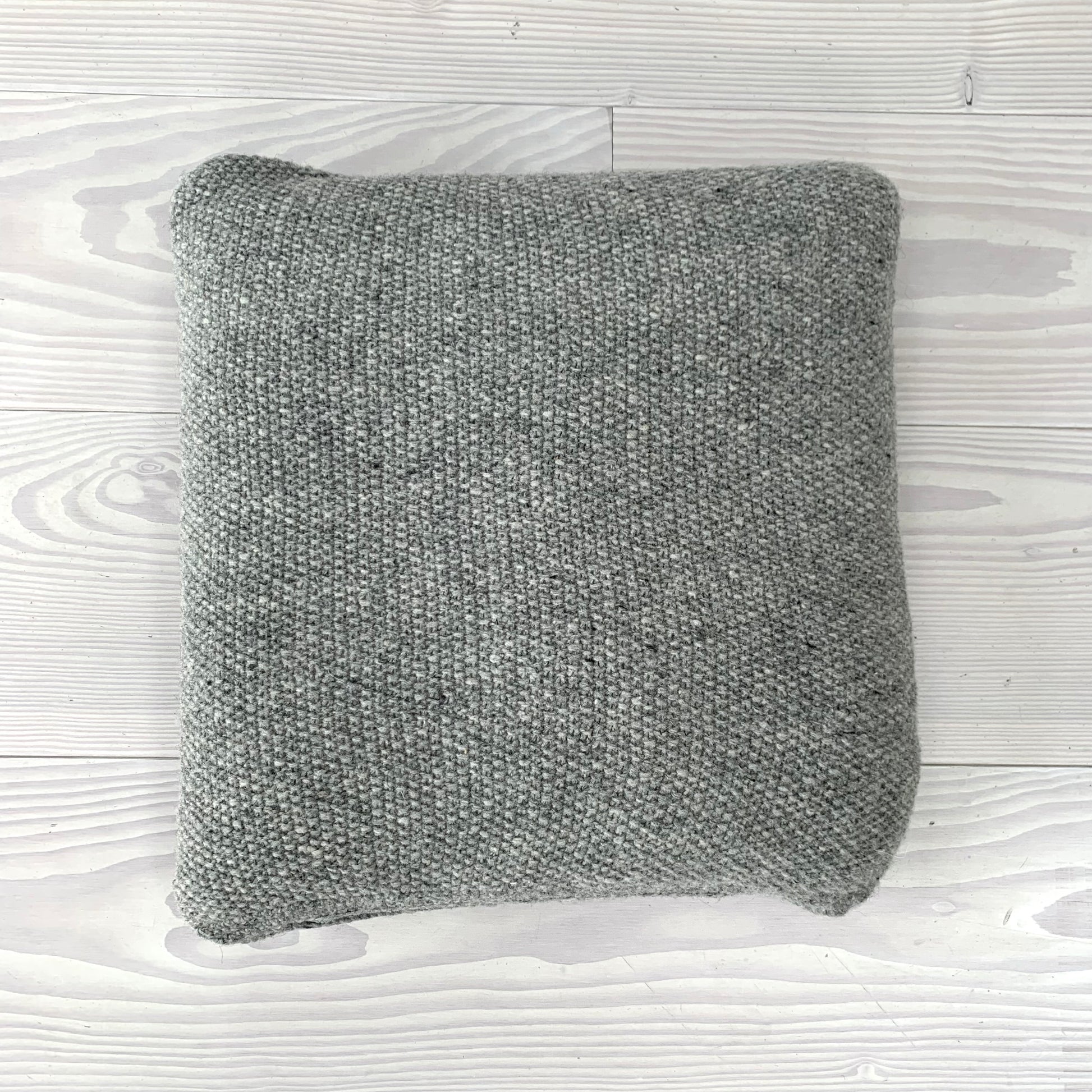 Wool Pillow i grå toner, er håndstrikket af kvinder i Montenegro med 100% økologisk uld i høj kvalitet. Elegant og komfortabel.